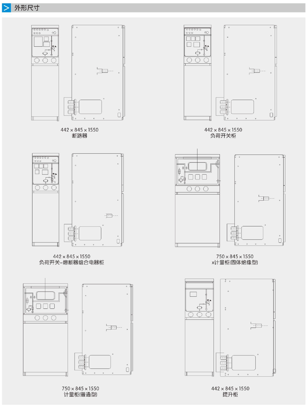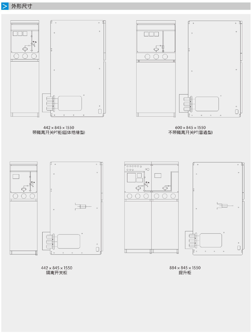 能單元通過全絕緣固體匯流母線連接。因此,整個(gè)開關(guān)設(shè)備不受外部環(huán)境影
