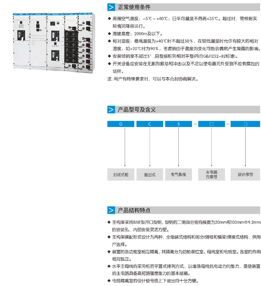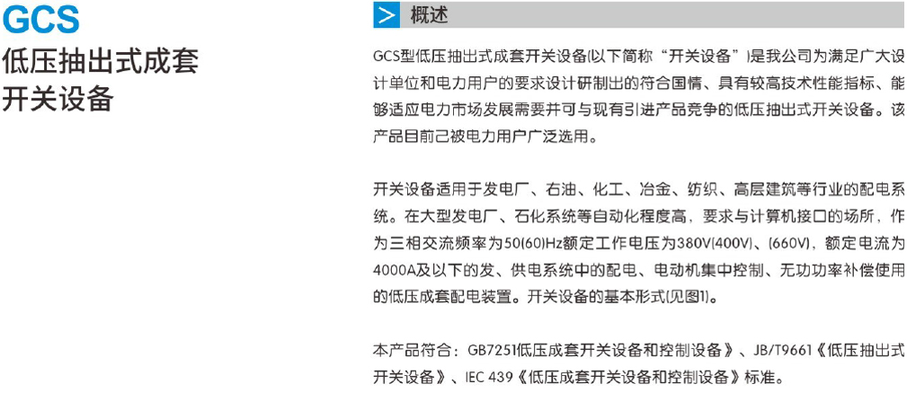 GCS型低壓抽出式成套開關設備以下簡稱“ 開關設備”)是我公司為滿足廣“大設